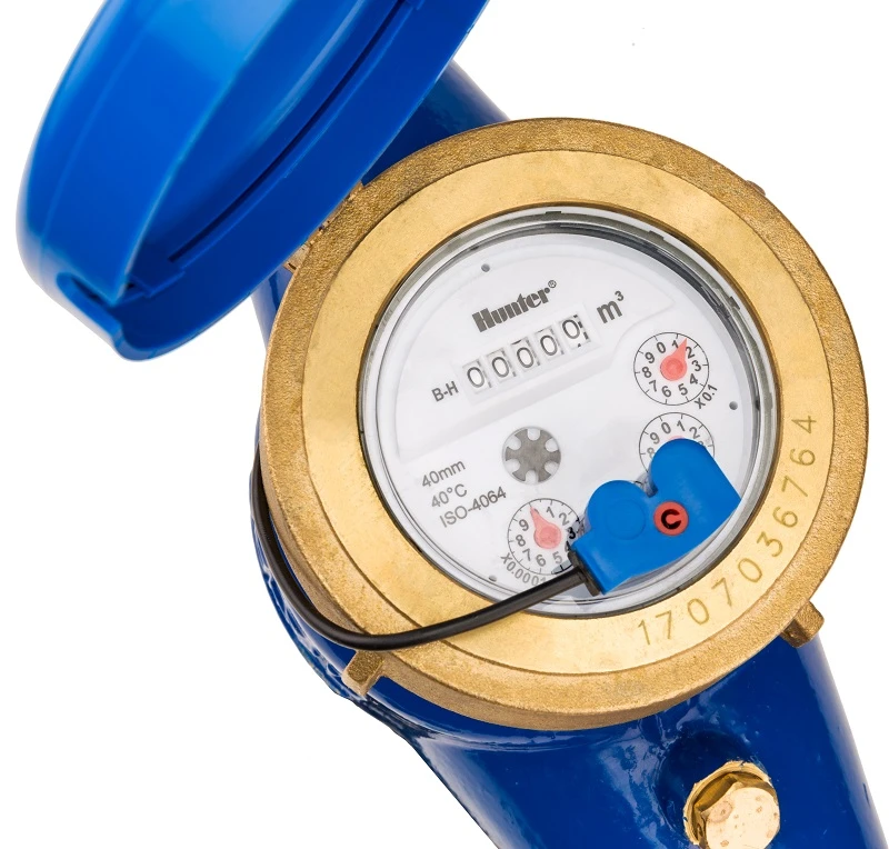 Електронен водомер, който следи разхода на вода от всяка една поливна станция, постоянен мониторинг на общия разход за вода. Свързва се към поливни системи, управлявани от програматори с Wi-Fi контрол, приложим единствено с програматори HUNTER HYDRAWISE. Чрез него се осъществява допънителна защита на поливната система, чрез средни статистически стойности за изразходената вода от един поливен кръг.